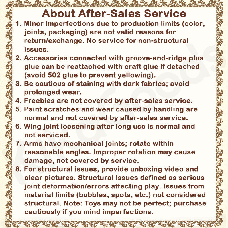 - To buy the whole set, please choose the 6 PCS (Whole Set) purchase option. If duplicate items (blind boxes) appear in the whole box, you can contact us and we will actively contact the factory and the brand to handle after-sales issues.