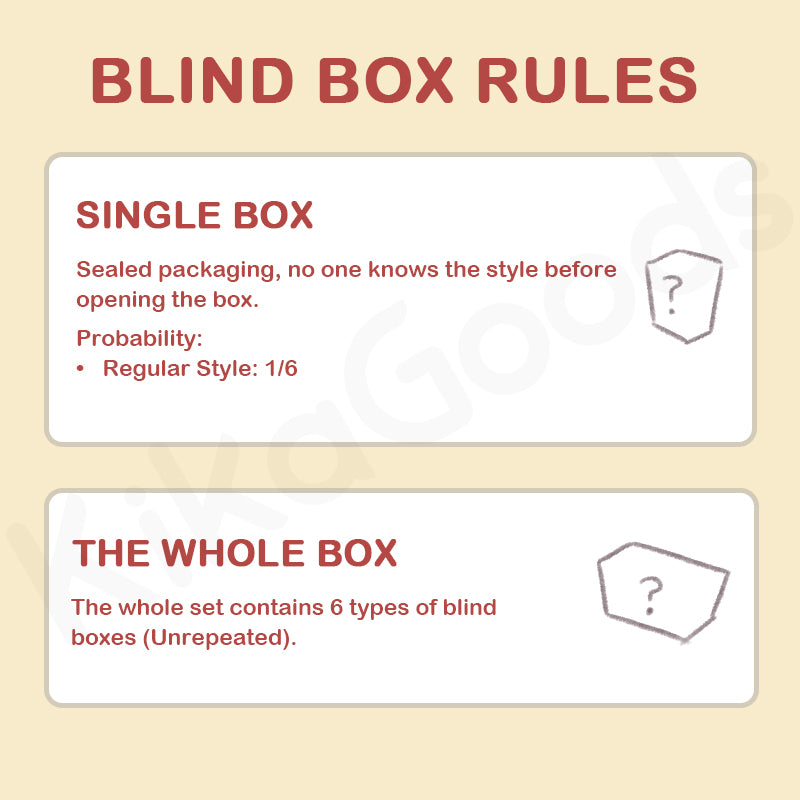 To buy the whole set, please choose the 6 PCS (Whole Set) purchase option. If duplicate items (blind boxes) appear in the whole box, you can contact us and we will actively contact the factory and the brand to handle after-sales issues.