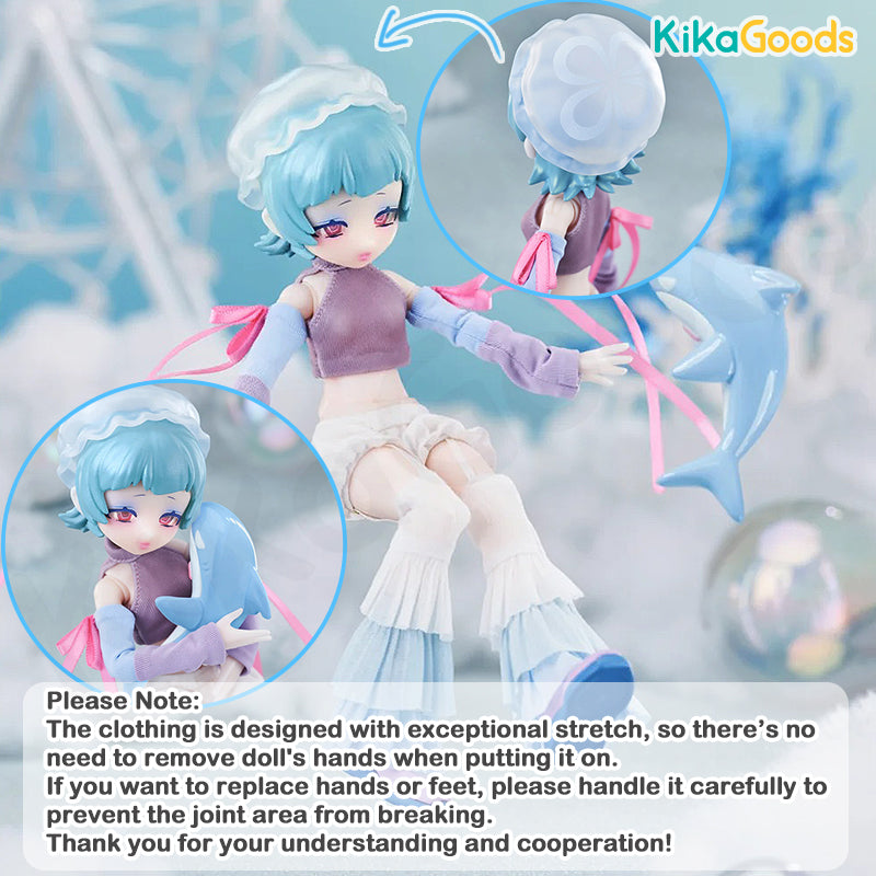 1. The clothing is designed with exceptional stretch, so there’s no need to remove doll's hands when putting it on. If you want to replace hands or feet, please handle it carefully to prevent the joint area from breaking. Thank you for your understanding and cooperation!