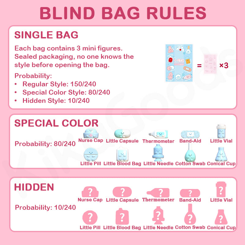 - Due to the special feature of this blind bag, the brand assembles the styles based on the total production quantity. If you purchase multiple blind bags at once, or buy the same blind bag product in multiple orders, you might receive repeated figures, which is normal and not covered by after-sales services.