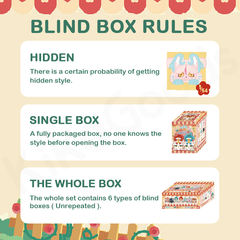 - For the same blind box product across multiple orders, we cannot guarantee there will be no duplicates.