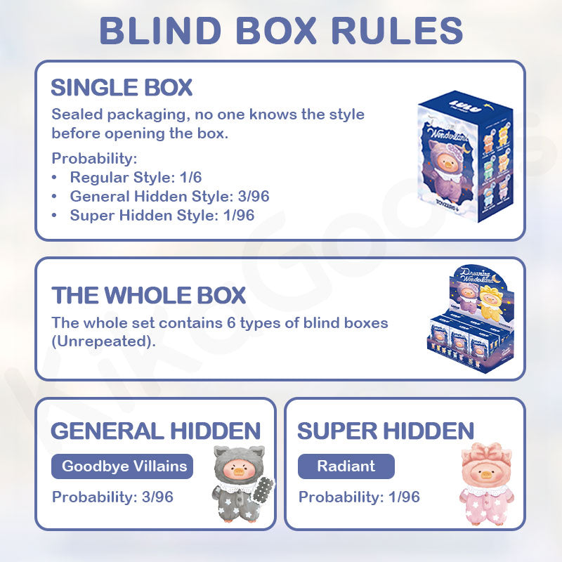- The probability of getting a hidden style is the same as the original packaging box style (please rest assured that we will ship it as usual, even if it's a hidden style).