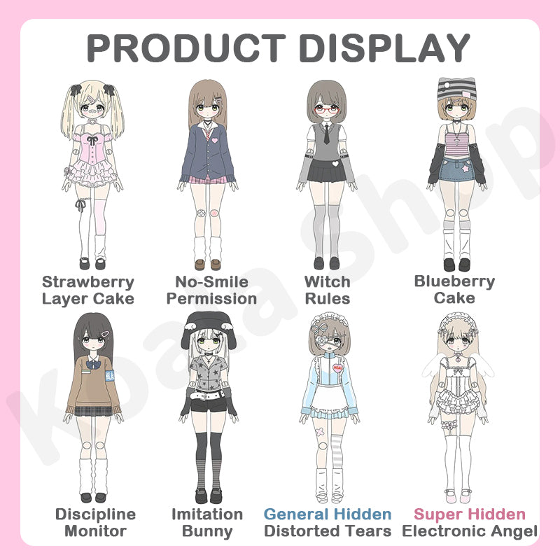 3. The production ratio of general hidden mini-figure (Distorted Tears) is 1/108, and the production ratio of super hidden mini-figure (Electronic Angel) is 1/720.