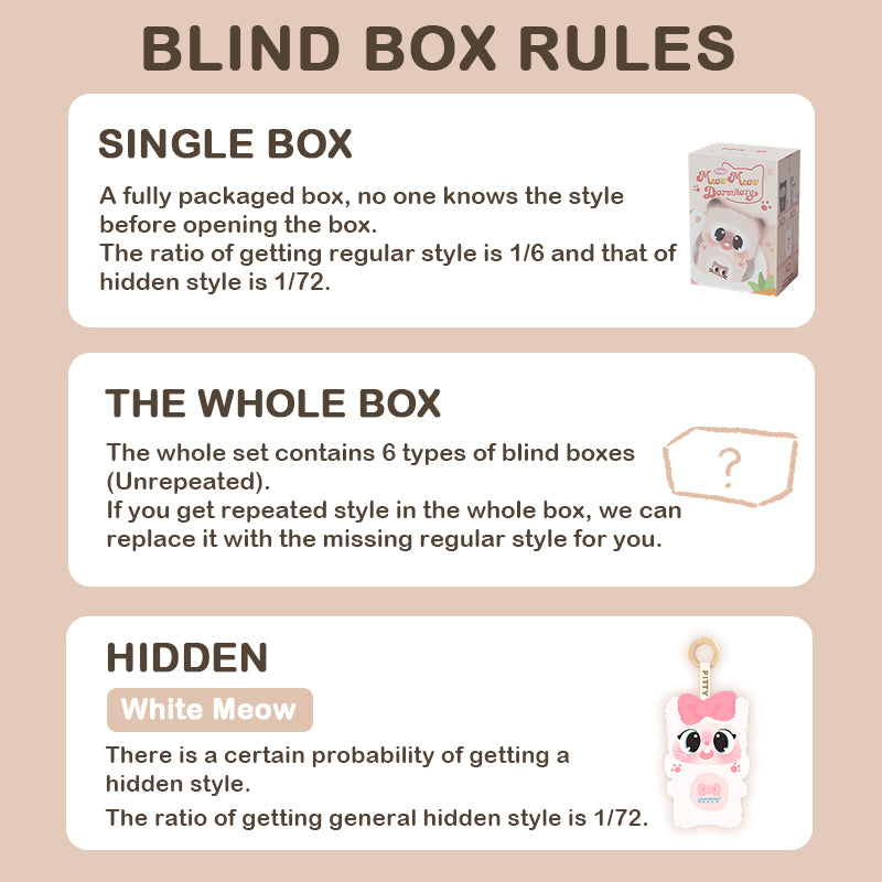 - For the same blind box product across multiple orders, we cannot guarantee there will be no duplicates.