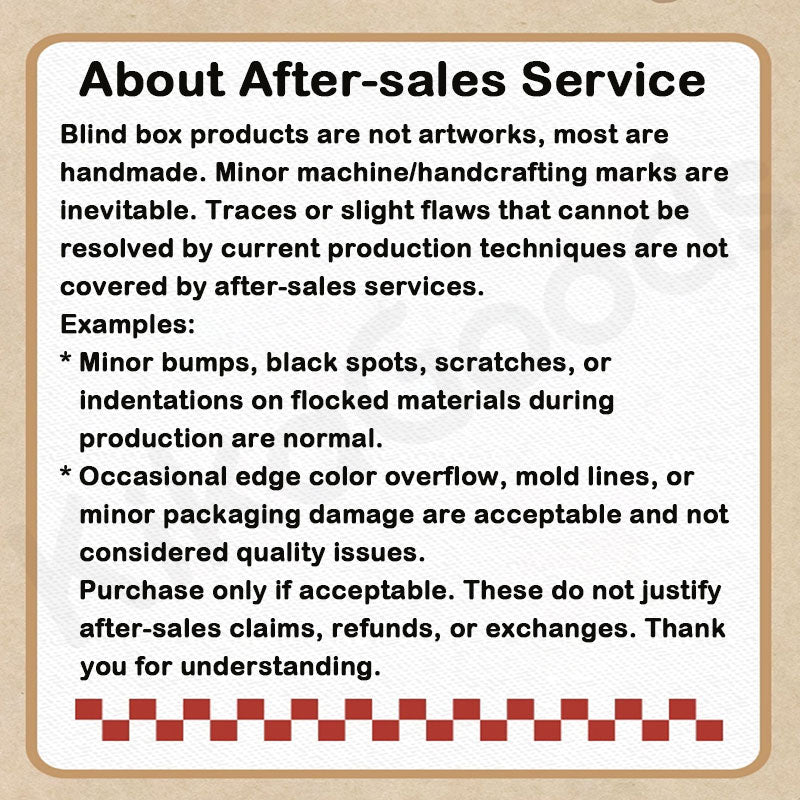 • To buy the whole set, please choose the 6 PCS (Whole Set) or No Box - 6 PCS (Whole Set) purchase option. If duplicate items (blind boxes) appear in the whole box, you can contact us and we will actively contact the factory and the brand to handle after-sales issues.