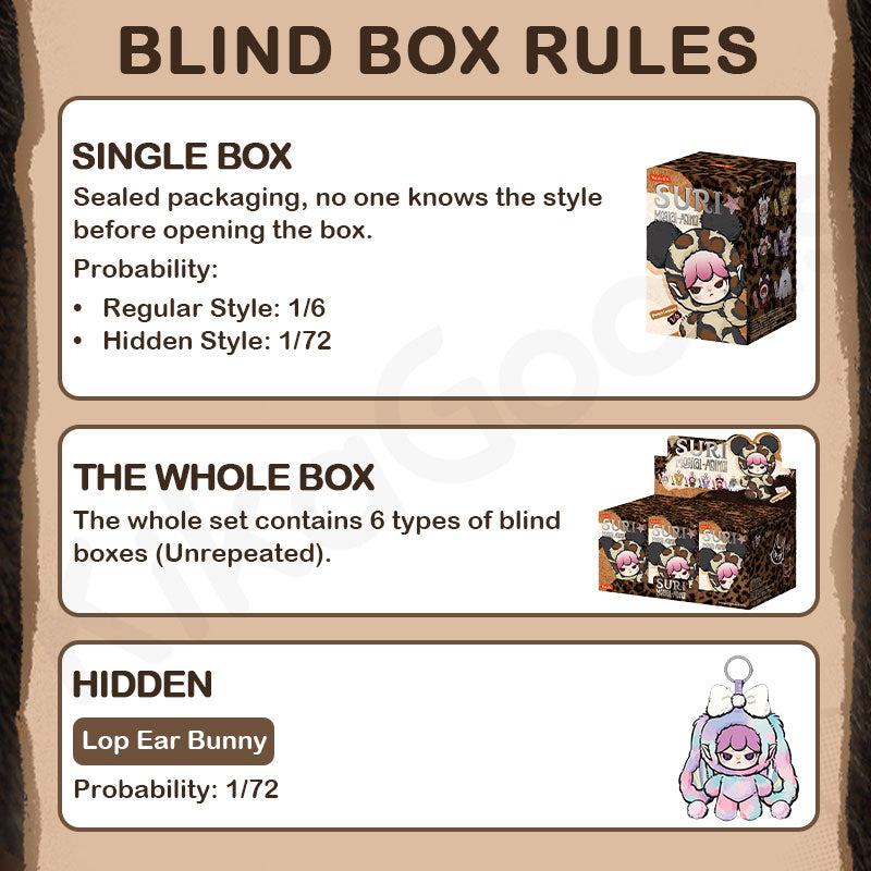 - The probability of getting a hidden style is the same as the original packaging box style (please rest assured that we will ship it as usual, even if it's a hidden style).